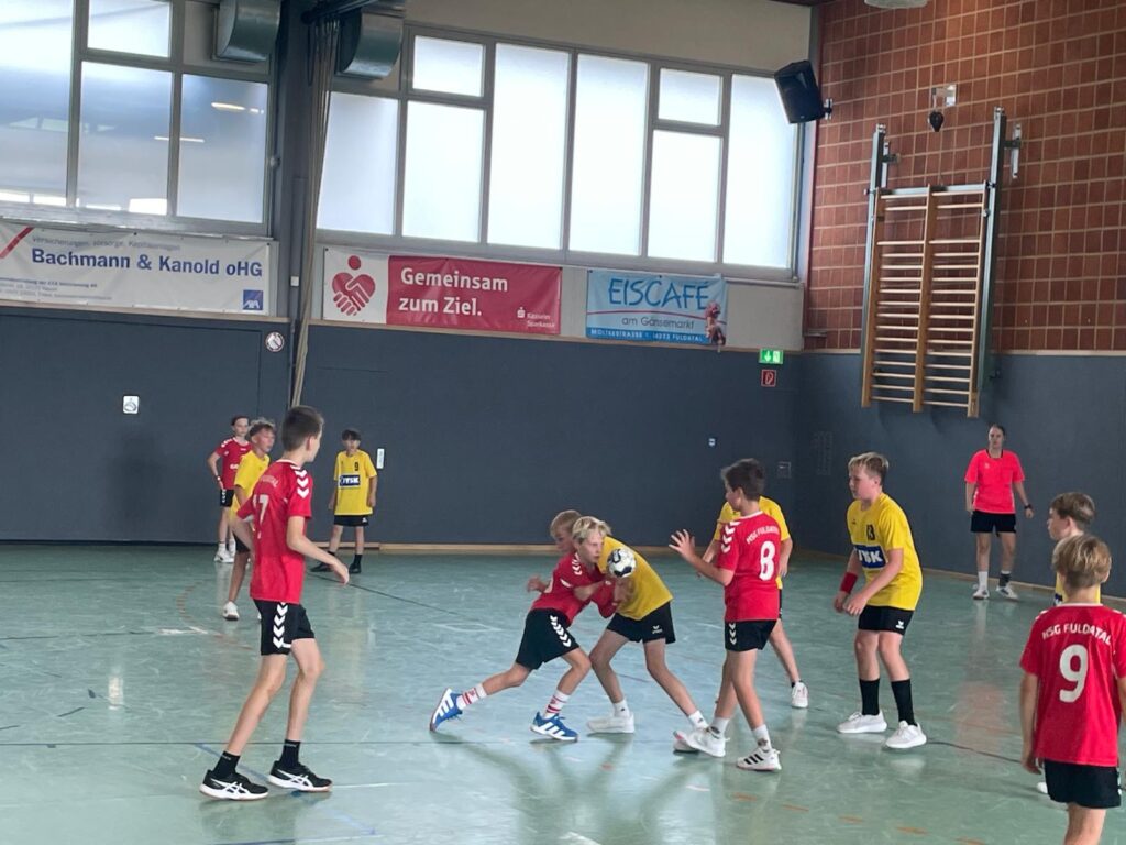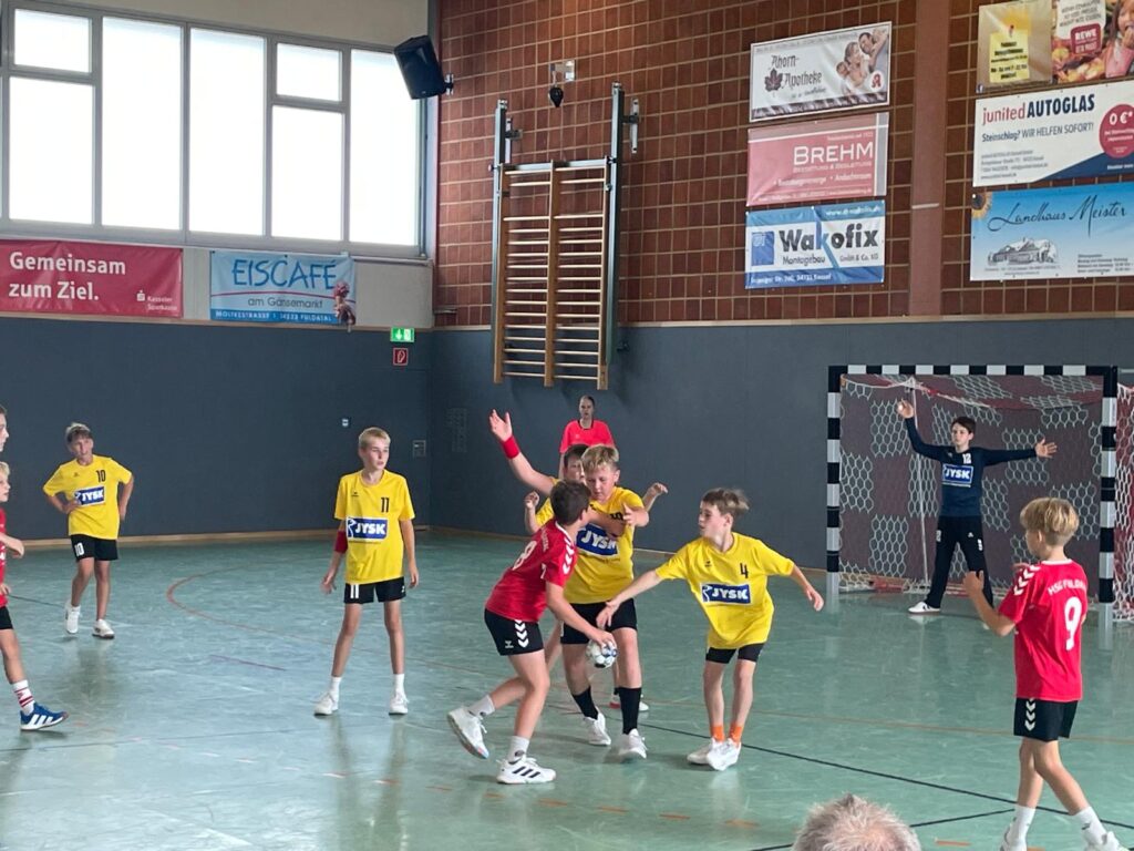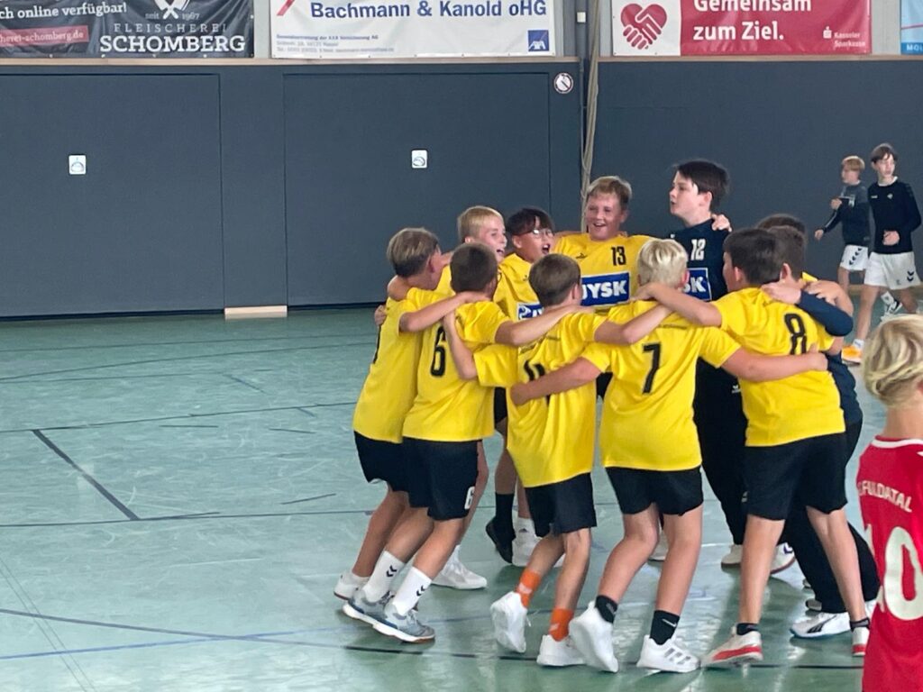 nnnnNach dem Auftaktsieg letzte Woche ging es dieses Wochenende zur HSG Fuldatal. Von Beginn an entwickelte sich ein Spiel auf Augenhöhe. Die Jungs zeigten früh, was sie sich heute vorgenommen hatten. In der zweiten Halbzeit belohnte sich die kämpferische Leistung der gesamten Mannschaft. Während die Fuldataler in der ersten Halbzeit noch einen kleinen Vorsprung hatten, kippte das Spiel Mitte der zweiten Hälfte zugunsten unserer Jungs. Mit einem 5:0-Lauf und einem stark aufgelegten Emil im Tor, der unter anderem zwei Siebenmeter entschärfen konnte, legten die Jungs den Grundstein für den Erfolg. Die Fuldataler gaben bis zum Schluss alles, doch wir ließen uns den Sieg nicht nehmen und gewannen 26:24. Zur Belohnung gab es einen „Auswärtssieg“-Tanz.