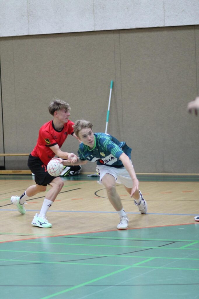 nnnnUnsere Jungs kamen gestärkt – durch taktische Umstellung in der Abwehr – gut aus der Kabine! Vorne wurde jetzt vom Rückraum Justus, Luke und Milo, dem ein besonderes Lob ausgesprochen werden muss, Druck auf die Abwehr ausgeübt und so fiel nach 33 Minuten endlich durch Maxim das erste Tor vom Kreis! Nur so richtig vom Rückstand konnten wir nicht abknabbern, im Gegenteil, Phil musste verletzt nach 36 Minuten passen. Für ihn kam Jakob, der nächste B-Jugendspieler, auch er machte seine Sache gut! Trotzdem konnte Ost-Mosheim ein 10-Tore-Vorsprung bis zur 42. Minute herauswerfen! Die Jungs gaben sich nie auf und versuchten alles, um noch auf Tuchfühlung zu kommen! Milo mit 4 Toren und 2 Topp-Anspielen an den Kreis, die Sönke sicher verwandeln konnte – da keimte noch einmal Hoffnung auf – denn beim 27:31 waren noch 5 Minuten zu spielen. Es wurde jetzt ruppiger und eine Rote Karte für die Gäste sollte uns zusätzliche Motivation geben, die Zeit lief gnadenlos runter und am Ende war der Vorsprung einfach schon zu groß gewesen.